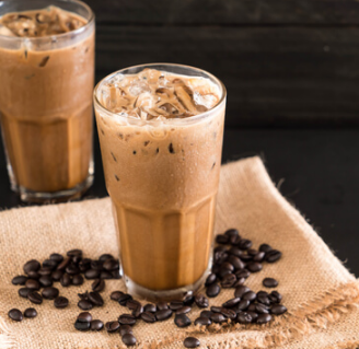Un latte helado con el rico sabor a chocolate de nuestra salsa de chocolate de la casa
