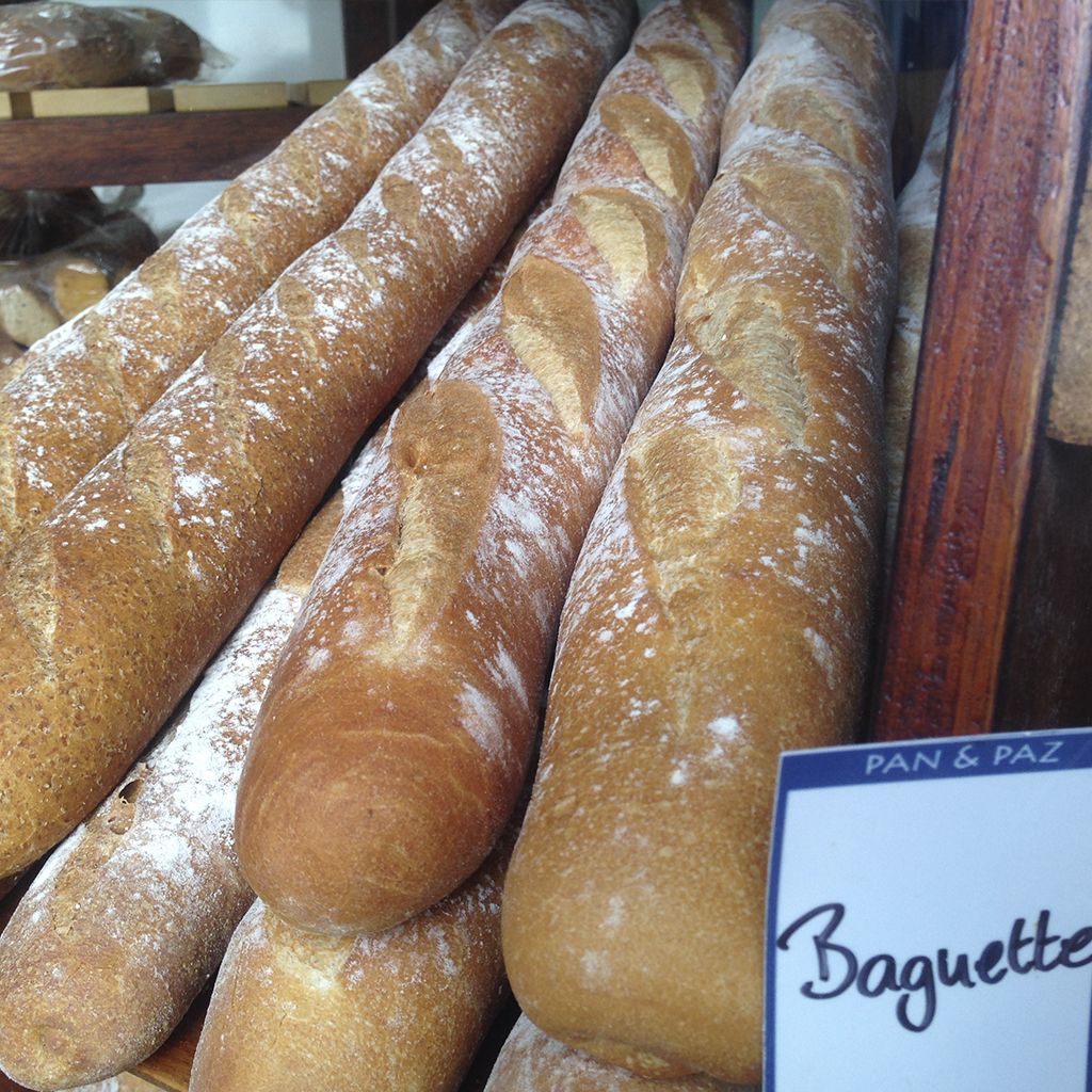 La Baguette tradicional francés: crujiente afuera y suave por dentro. De harina blanca o Integral.