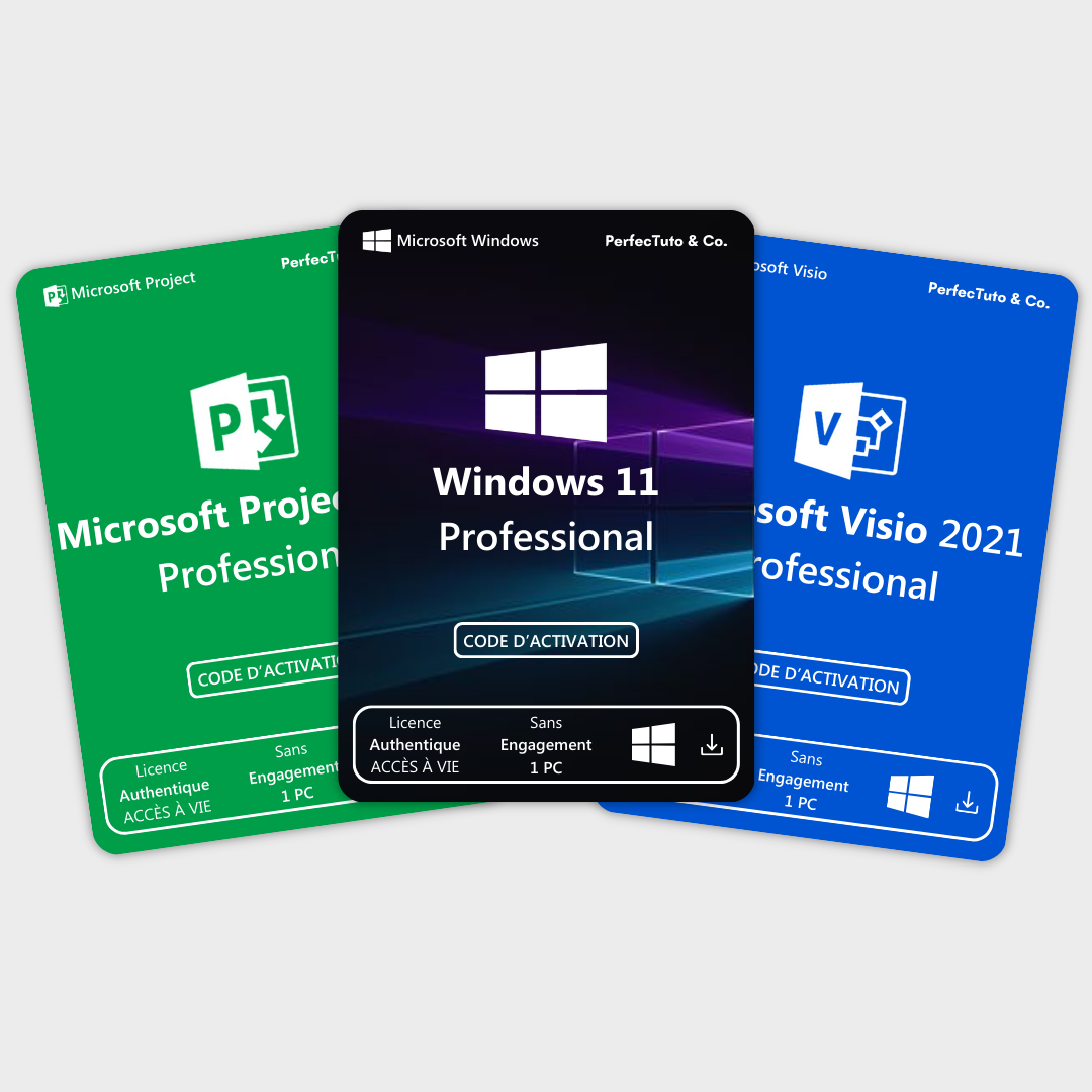 💼 Pack Complet Microsoft – Windows 11 Pro + Project 2021 Pro + Visio 2021 Pro