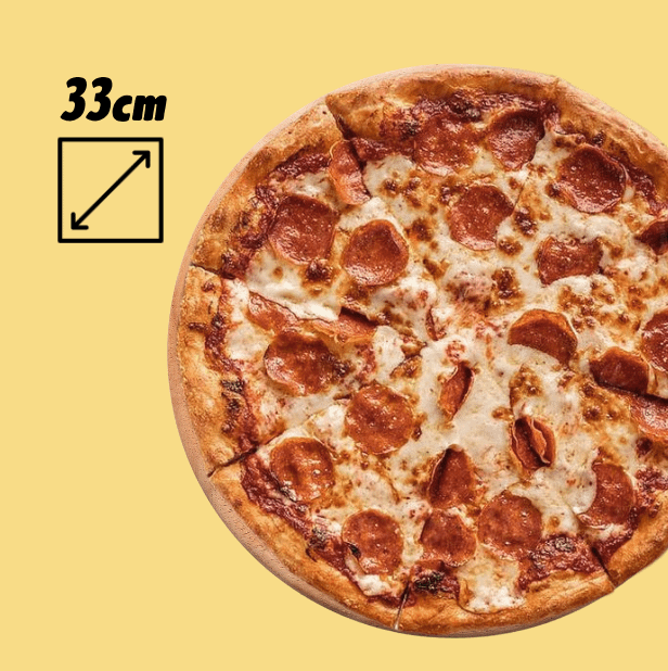 Sauce tomate, emmental, mozza, chorizo, poivrons, olives et origan