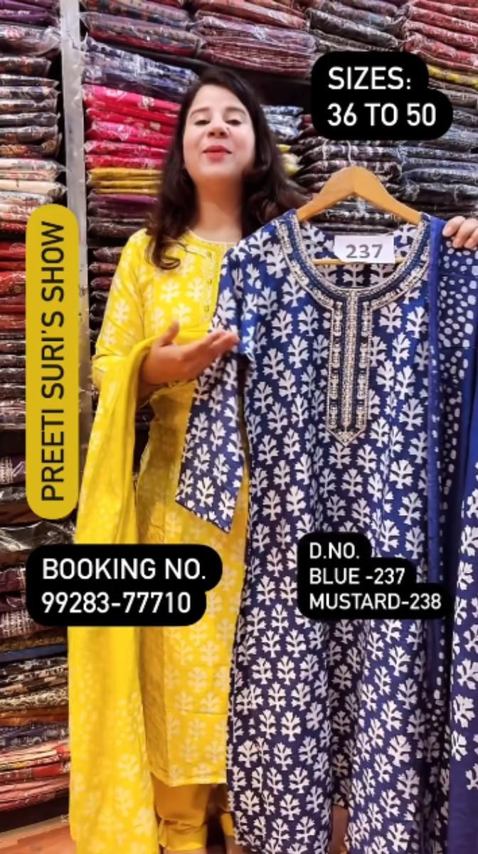 β¨ Royal Blue Cotton Silk 3-Piece Suit β D.No.237 β¨