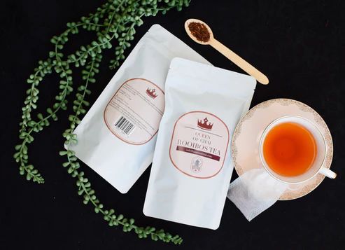 Organic long cut Rooibos packaged in our compostable reusable tea bags