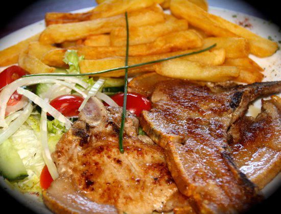 Indulge in savory perfection with our mouthwatering pork chop and chips meal! Tender, juicy pork chops paired with golden, crunchy chips create a dining experience that hits the spot every time. Treat yourself to a delicious feast that's sure to satisfy your cravings! #PorkChop #Chips #SavorTheFlavor