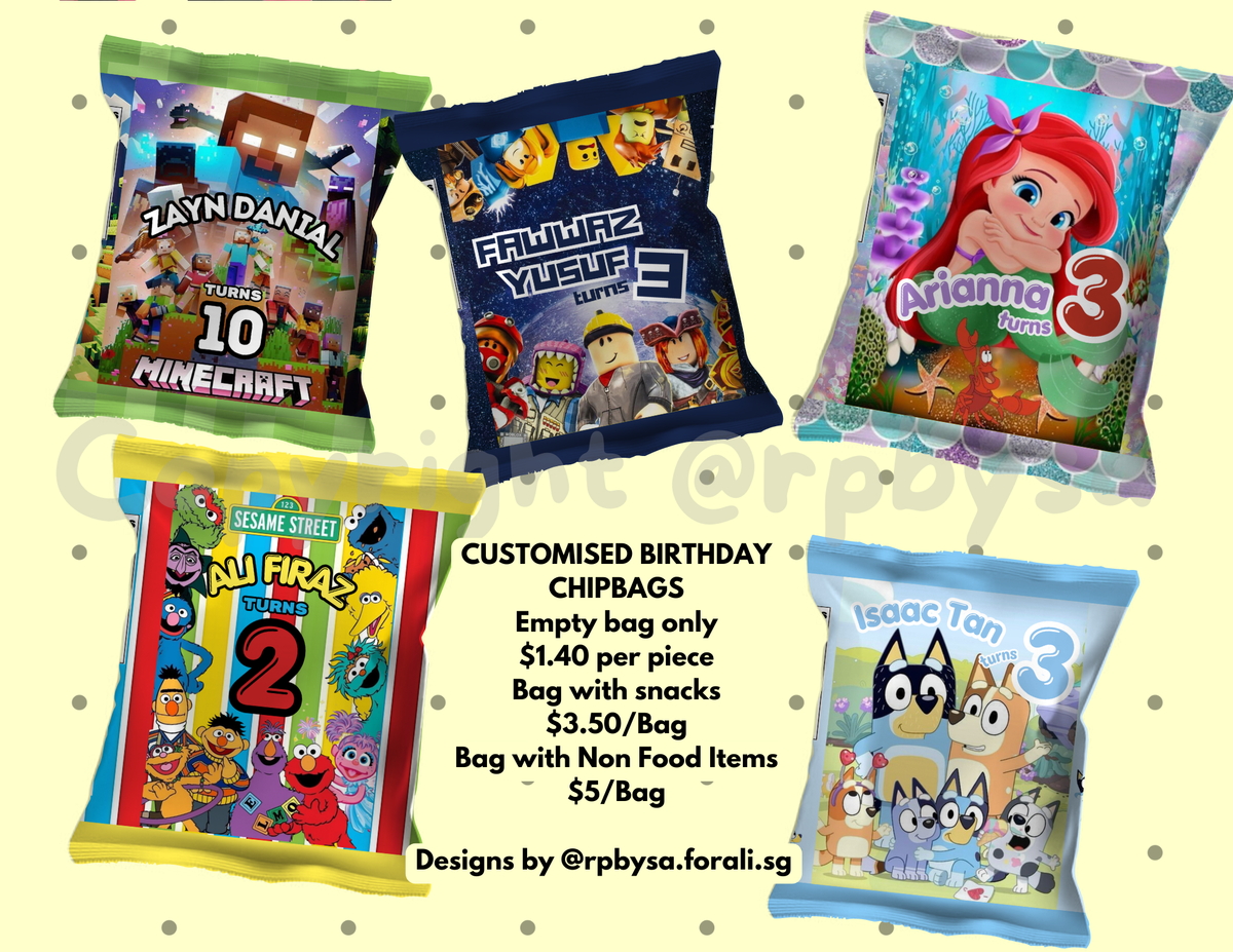 Elevate your party Favors when you use our customised chipbags! Absolutely pleasing to the eyes, Kids will love them so much!