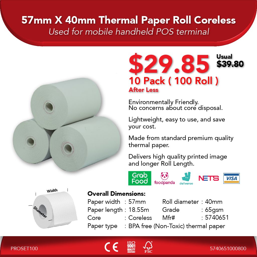 Post_Description: 57mm X 40mm Thermal Paper Roll Coreless