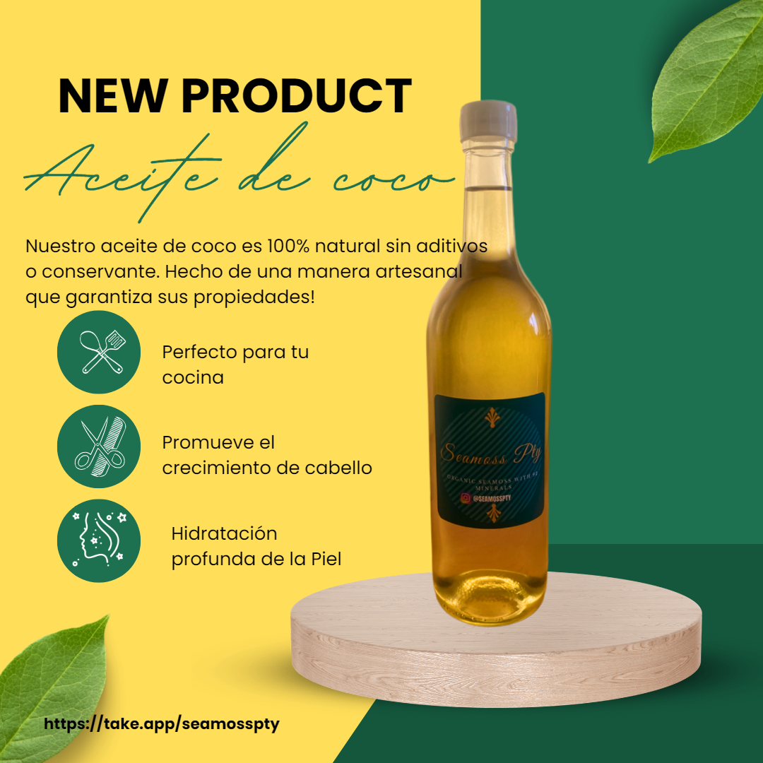 Aceite de coco 100% puro y orgánico! Nuestro aceite de coco proviene de los cocos más frescos y es rico en antioxidantes, vitaminas y ácidos grasos esenciales, lo que lo convierte en la adición perfecta para cualquier estilo de vida saludable.