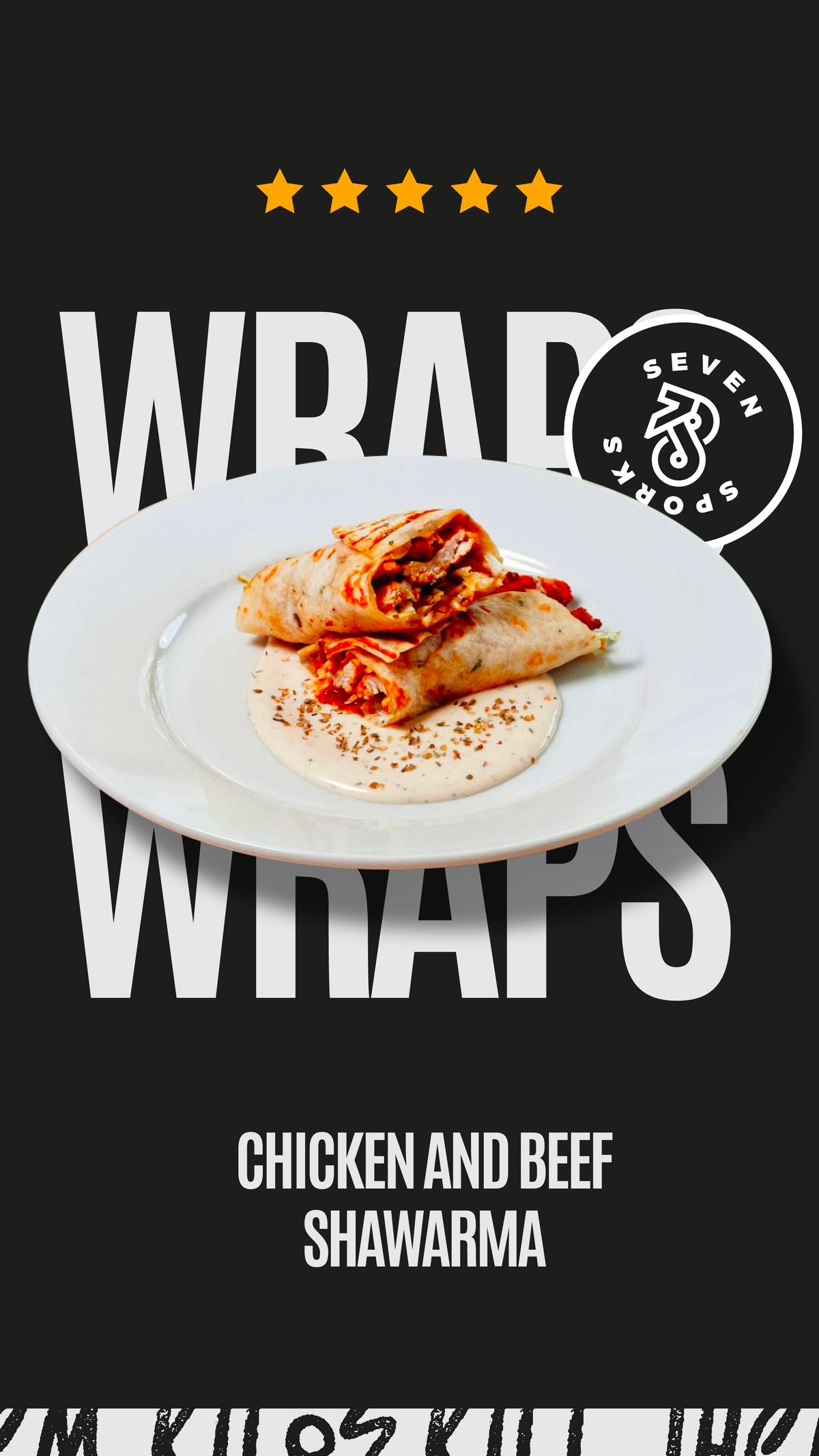 Indulge in our chicken shawarma with signature Seven Sporks seasoning, succulent chicken enveloped in bold, authentic flavours for a taste sensation like no other!