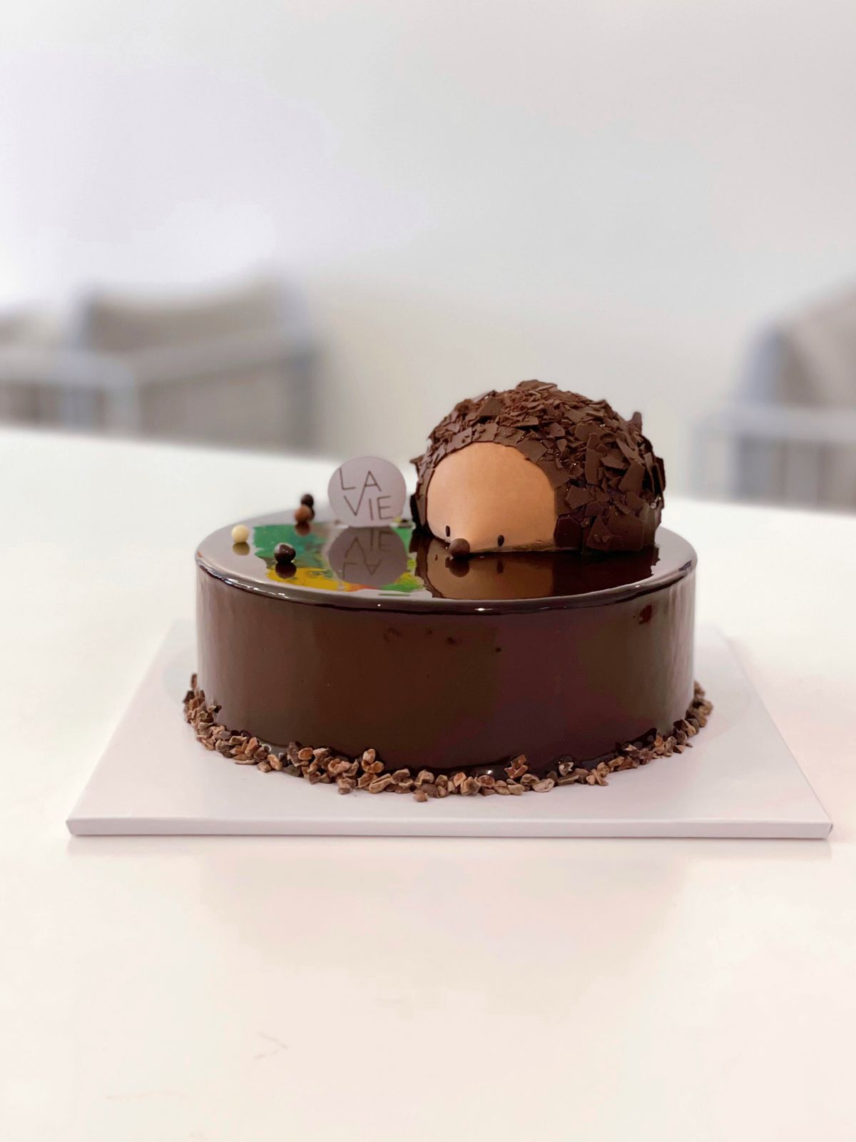 Indulge in the exquisite Epic chocolate cake, a decadent creation featuring a harmonious trio of Valrhona chocolate layers – white, milk, and dark chocolate mousse. Nestled within is a rich brownie sponge, complemented by the delightful crunch of crispy dark chocolate hazelnut praline feuilletine. Crowned with a luscious chocolate glaze and adorned with cocoa nibs, this cake promises a symphony of flavors and textures, delivering a truly epic chocolate experience.
