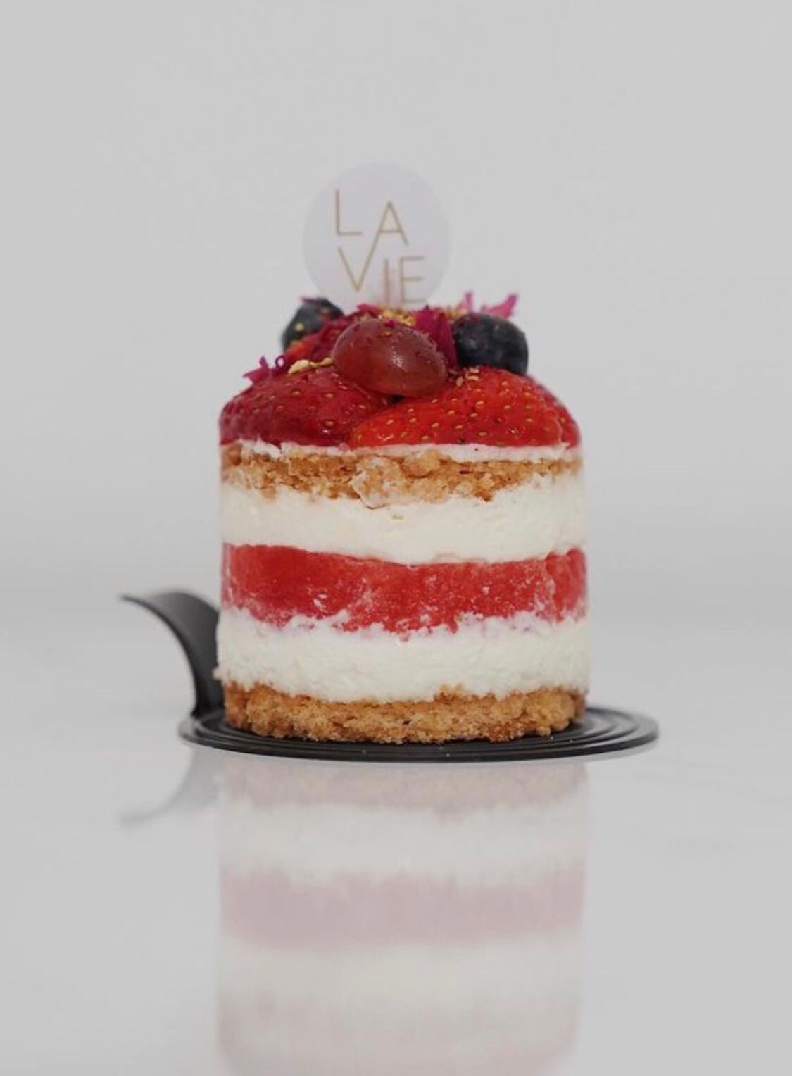 Almond Dacquoise | Fresh Watermelon | Rose Chantilly Cream | Fresh Strawberries, Grapes, Blueberries | Sprinkle of Chopped Pistachio & Rose Petals