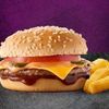 50g beef patty with a slice of cheese. Meal includes a small portion of our Famous Hand-cut chips. Choose options :