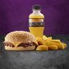 50g pure beef patty, a slice of cheese, and a serving of our appetising sauces. Meal includes small chips and a 200ml Cappy fruit juice