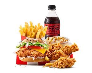 Crunch Burger, 1 Piece of Original Recipe Chicken, 2 Zinger Wings, Small Chips & Buddy Drink