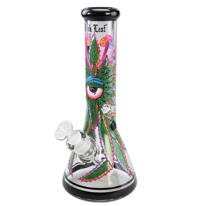 The Black Leaf Eye Hand Painted Flask Ice Bong - 7mm is a robust and durable ice bong with a wall thickness of 7mm. The hand painted psychedelic motif is painted with heat-resistant paint, assuring that the design won't wear down easily. The adapter with diffuser slits as well as a spacious ice chamber allows for a great cooling of the smoke.