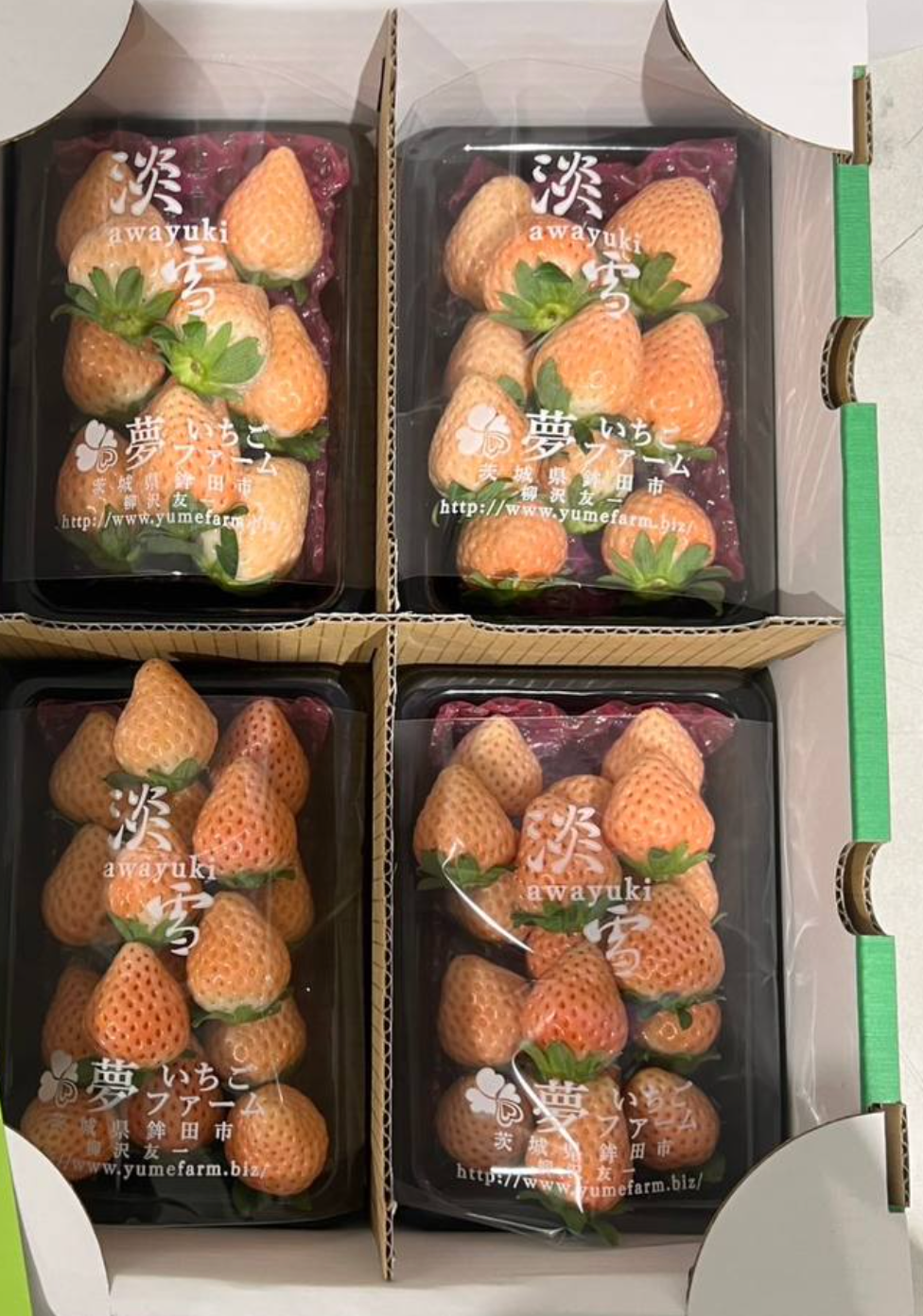 Awayuki Ichigo, also known as "Snow White Strawberry," is a rare and luxurious variety from Fukuoka Prefecture. These strawberries are prized for their unique white color, which gradually turns pink as they ripen. With a mild, delicate sweetness and a smooth, melt-in-your-mouth texture, Awayuki Ichigo offers a refined, elegant flavor profile. Grown in controlled environments to ensure optimal conditions, these strawberries are known for their exceptional quality and subtle aromatic notes. Perfect for gifting or enjoying fresh, Awayuki Ichigo is a true delicacy that stands out in both taste and appearance.