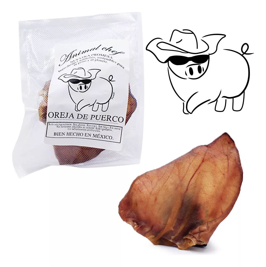 Oreja de puerco deshidratada 100% natural, sin añadidos ni conservadores, snack de dureza media que le encantará a tu mascota. 1 pieza