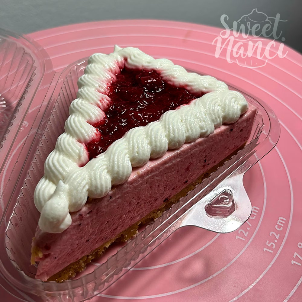 "Dulzura y frescura en cada mordisco 🍓🍰 Disfruta de nuestro Cheesecake de Fresa, con una textura cremosa y el toque perfecto de frutas frescas. ¡Puro amor en cada bocado!"