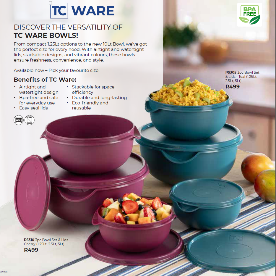 3pc Bowl Set & Lids - Teal (1.25Lt, 2.5Lt, 5Lt)