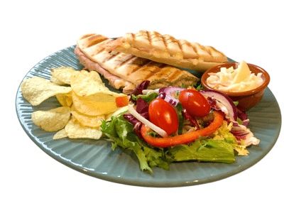 A selection of Panini's with various fillings, served with a salad garnish, crisps and homemade slaw. Gluten Free Panini's available on request.