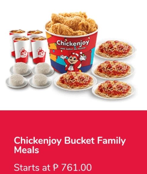 6-pcs. Chickenjoy w/rice, Jolly Spaghetti & drinks