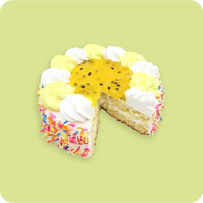 Mini vanilla cake with tangy granadilla cream.