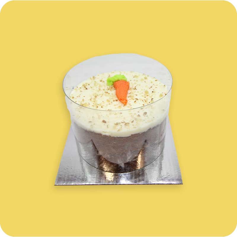 A pack of six mini carrot cakes with tangy frosting, perfect for gifting.