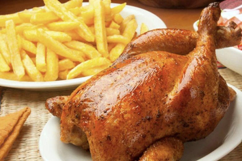 1 Pollo a la Brasa + papas fritas + arroz blanco.