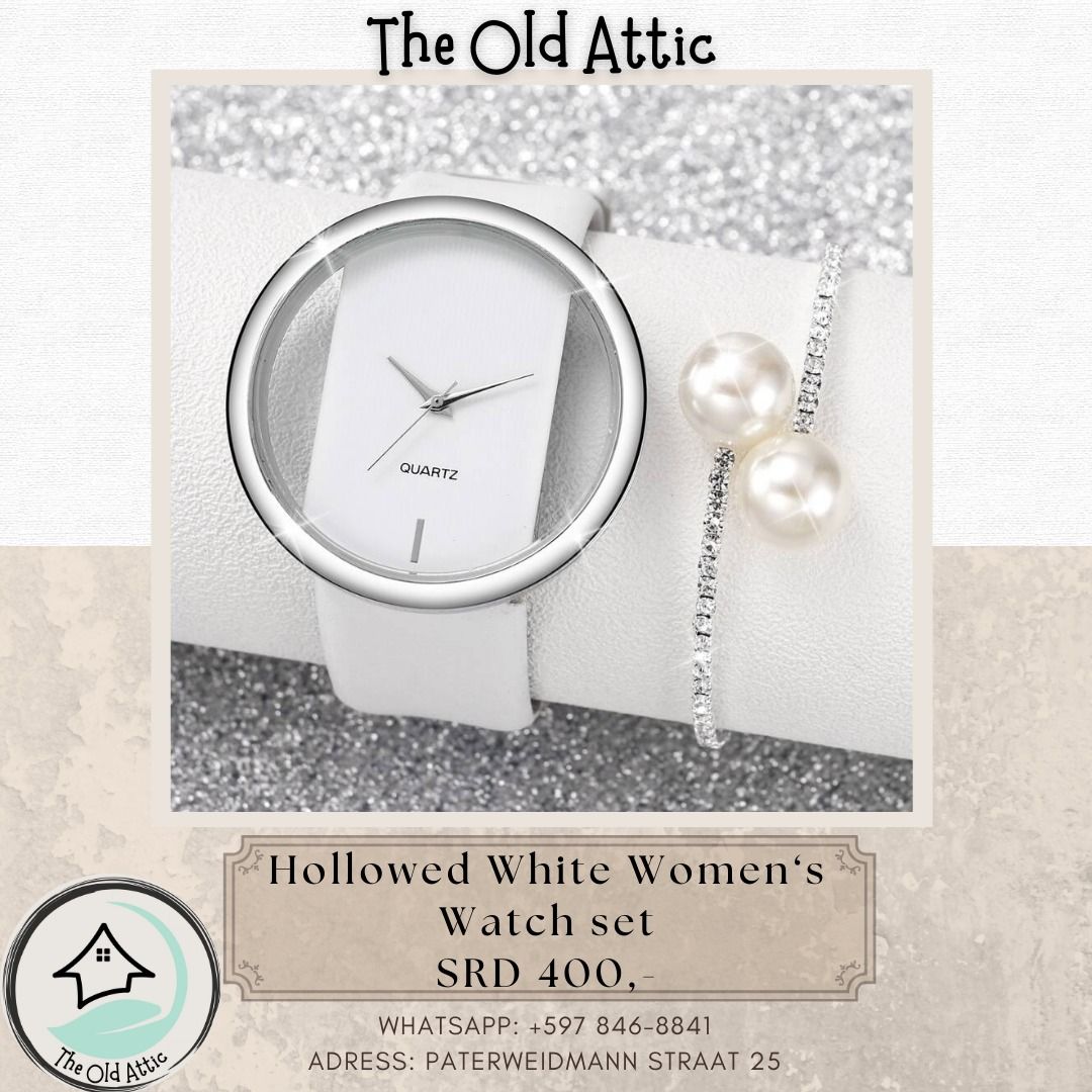 Hollowed White Women's Watch Set