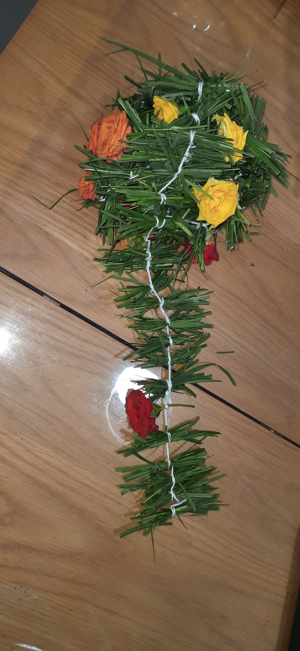 Arugampul/Durva tied with roses. Available as full ball 4 to 5 feet or loose in per feet.