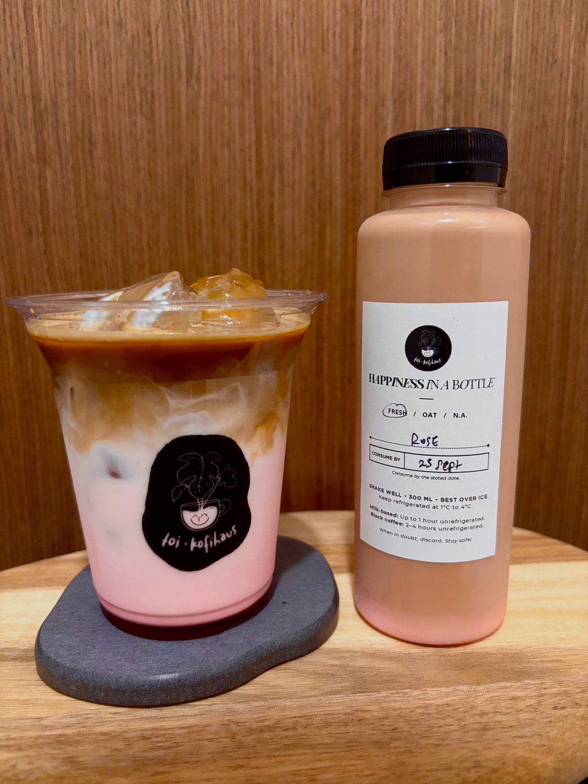 A toi.kofihaus signature - Rose flavoured White, expertly brewed and crafted. Available hot or iced, with your choice of fresh milk or oat milk