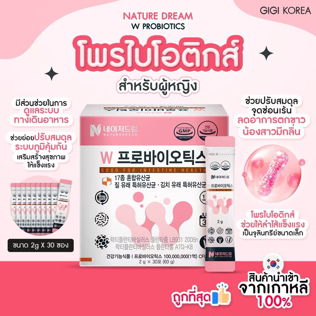 Nature Dream W Probiotics 30ซอง โพรไบโอติกส์ สำหรับผู้หญิง ช่วยปรับสมดุลจุดซ่อนเร้น ลดอาการตกขาว