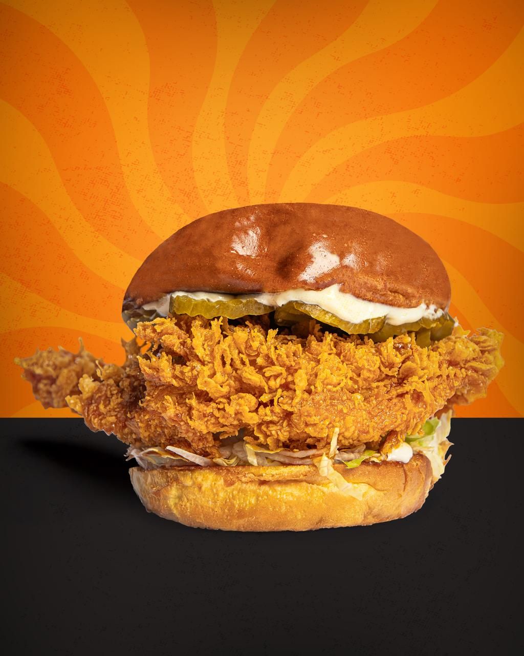 Fried chicken breast with our hot honey Nashville sauce, shredded iceberg, dill pickles, mayo, served with brioche bun.