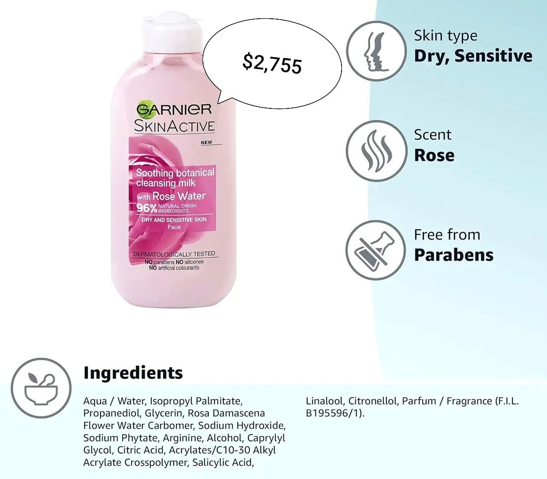 🌸 Gentle Cleansing & Soothing Hydration with Garnier SkinActive Rose Cleansing Milk! 🌸