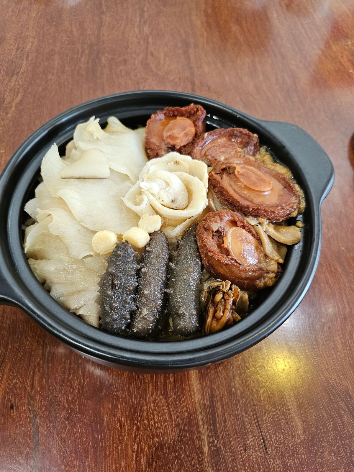 8 pax - deep sea treasure pot + Assorted Platter + Sauteed Season Green + Gongbao Diced Chicken + Salted Sea Prawn + Rice + Dessert