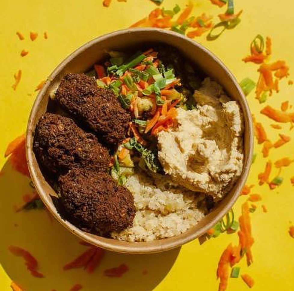 Vegetales salteados en nuestra salsa de naranja, acompañado de repollo agridulce, hummus y falafel de la casa.