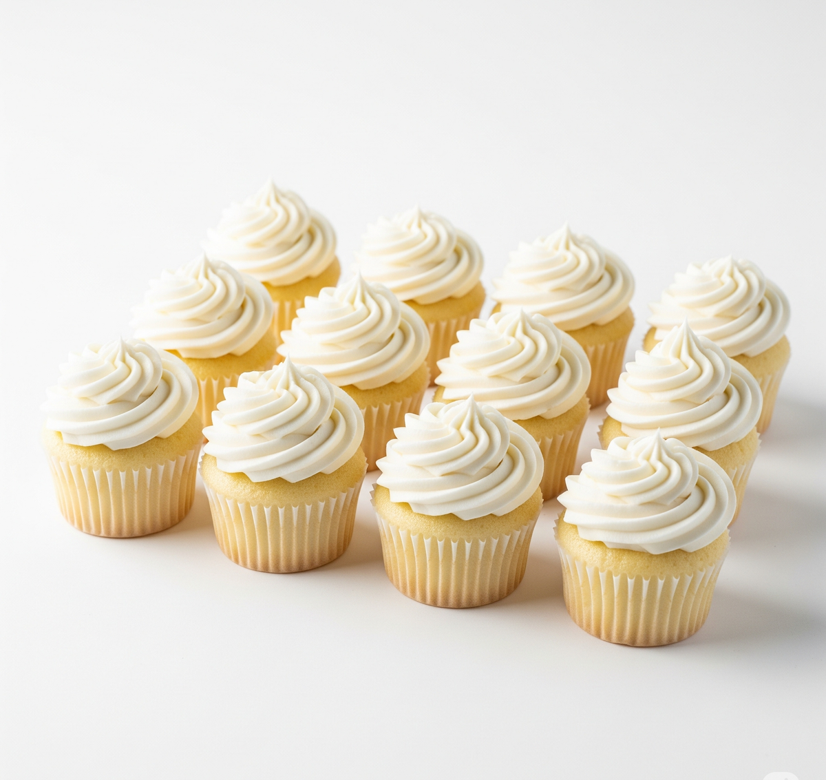 Each delightful miniature is a celebration of pure vanilla essence, offering a soft, airy crumb that melts in your mouth. Topped with a swirl of rich, creamy vegan vanilla buttercream, these bite-sized treats are a symphony of flavour and texture. We craft them with your choice of velvety sweetened Soy Milk for a classic, comforting taste or delicately rich sweetened Almond Milk for a subtle nutty note.
