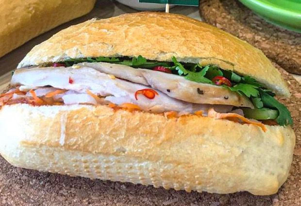 Choices of freshly sliced original chicken ham or garlic mushroom ham with pate, fresh coriander, cucumber, fresh chilies, pickled garlic, pickle carrots with homemade egg butter