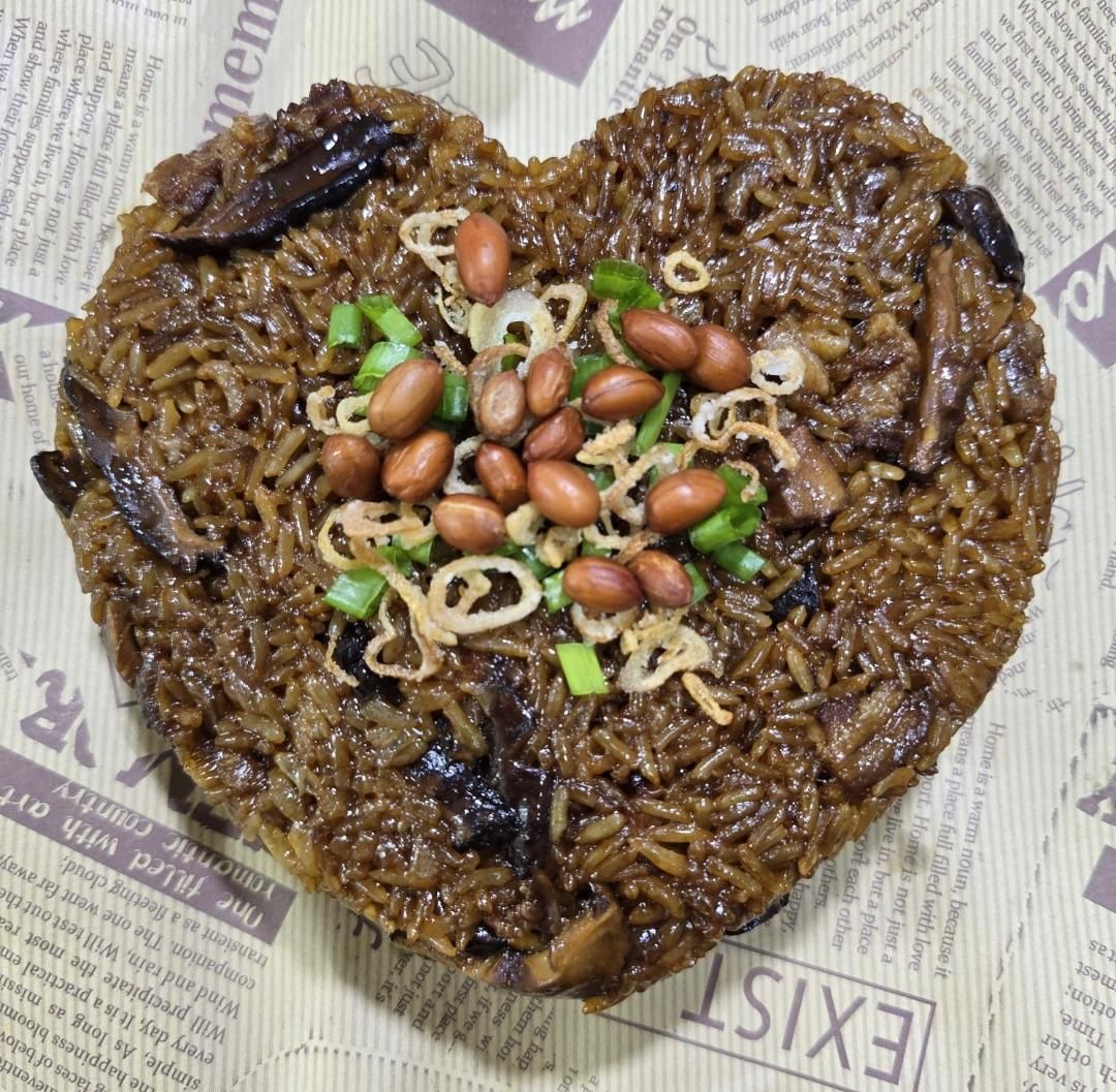 Pork belly is marinated overnight with sauces and together, we fried with dried shrimps, mushrooms, dried scallops and glutinous rice to get that flavourful delight before we steam them in high temperature to get that fragrant and tasty Glutinous Rice. Toppled with Dried Scallops, we present a Heart Glutinous Rice.