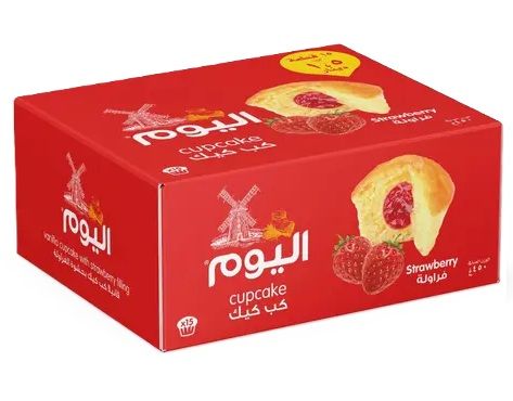 كب كيك اليوم محشو بالفراولة 30 جم 15 قطعة