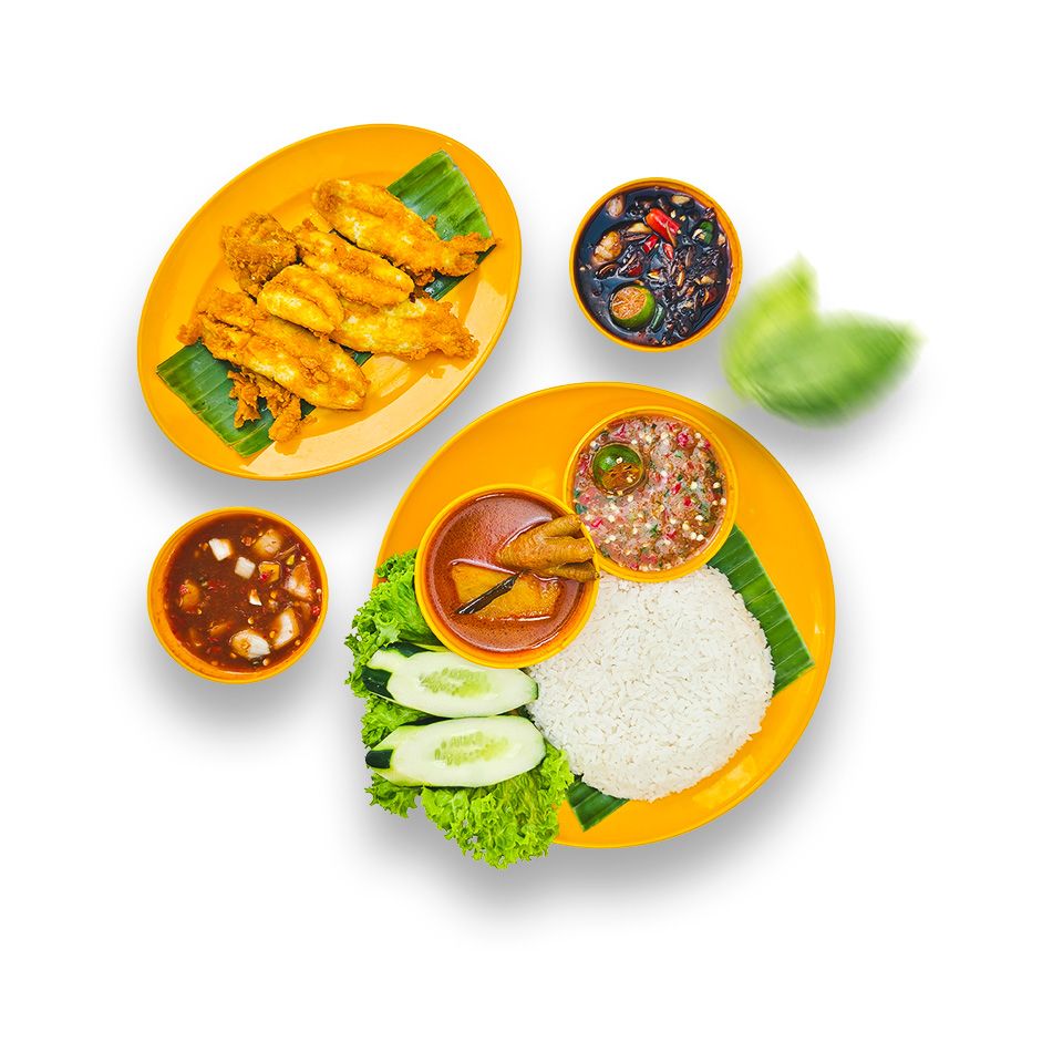 Di Hidang Bersama: Nasi Putih, Kuah Kari, Air Asam, Sambal Kicap, Sambal Belacan & Ulam-Ulaman.