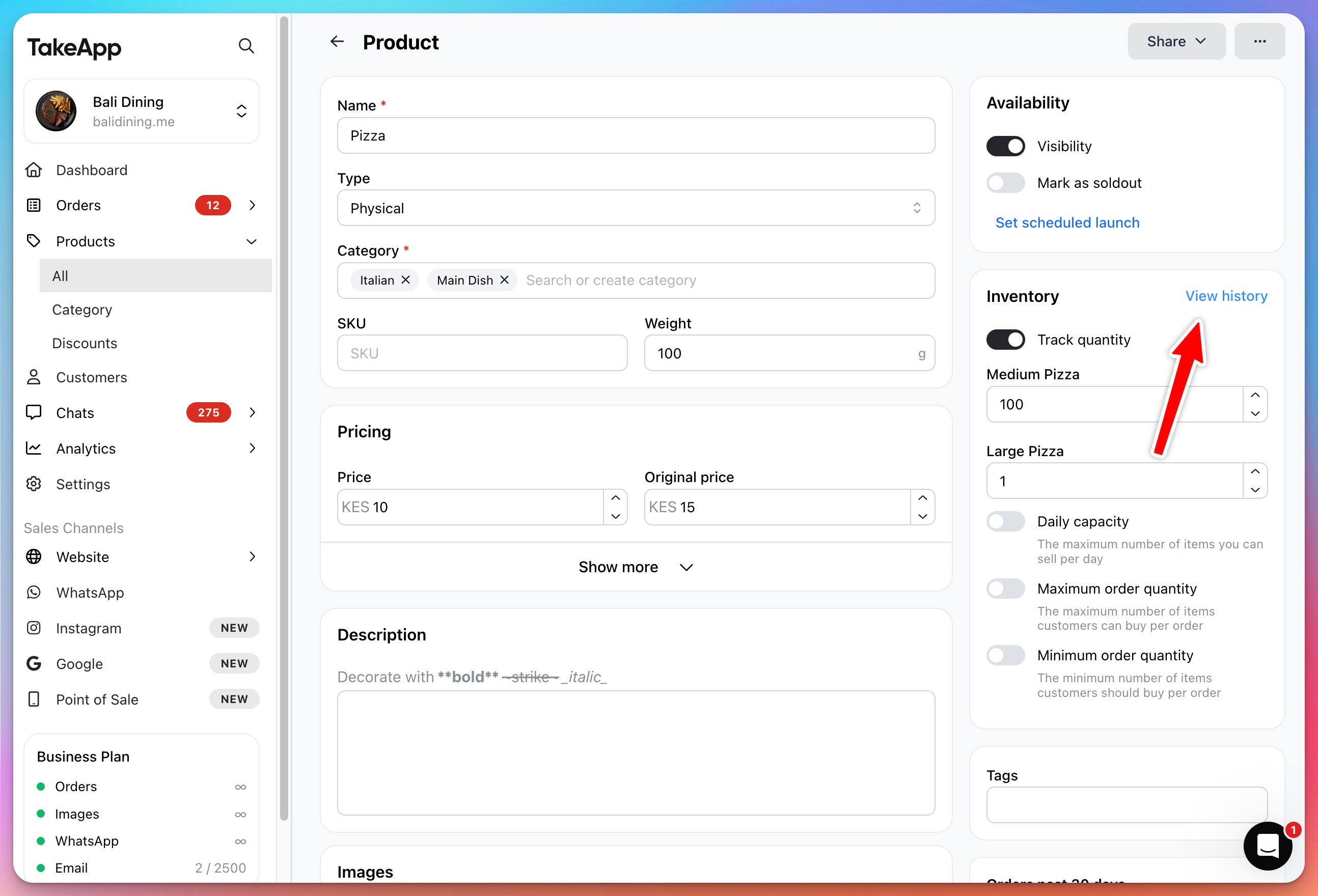Inventory history helps you see how stock changes over time in one place. It records order deductions, cancelled-order restocks, and manual inventory updates, so it is easier to understand what changed and when. Learn more