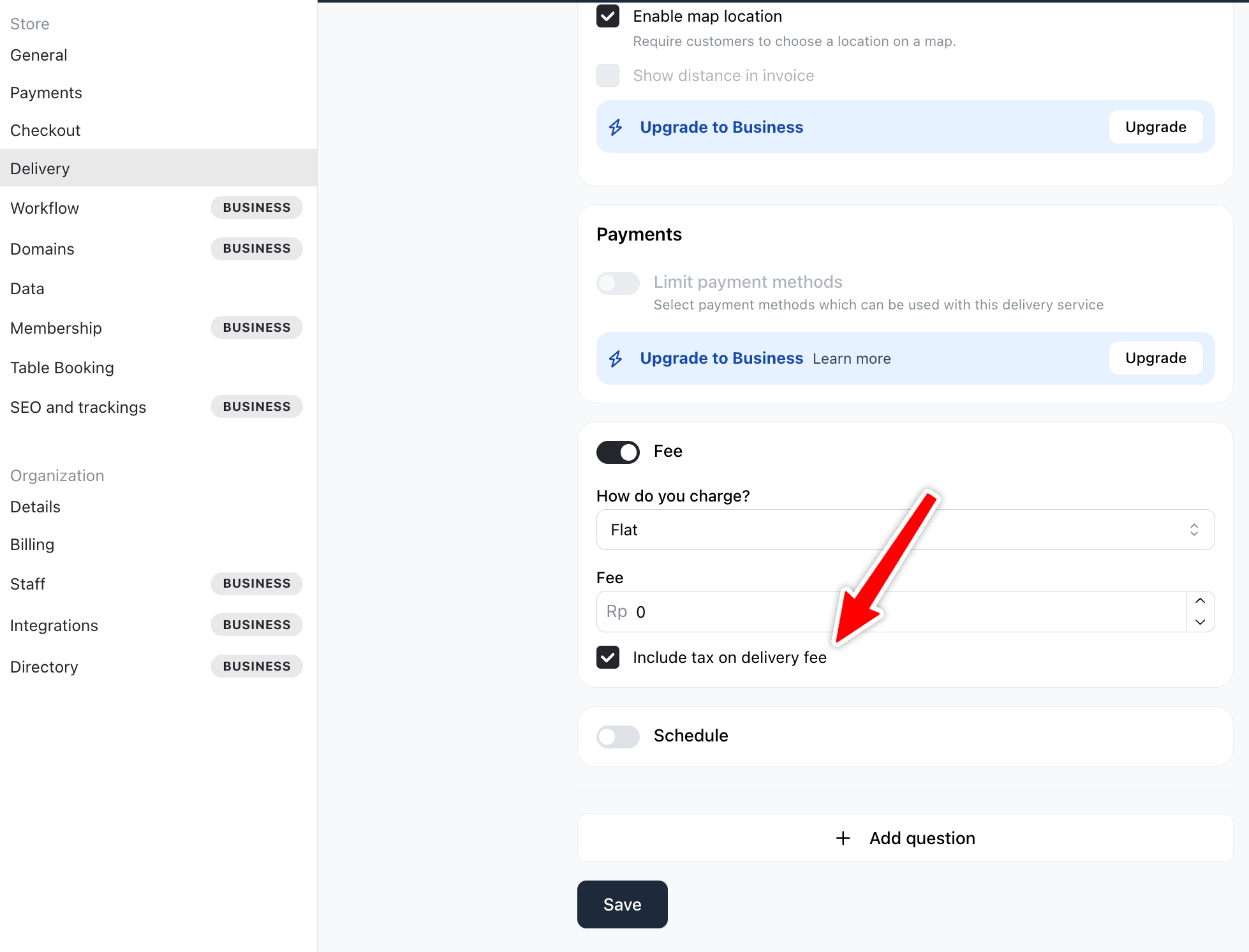 Delivery Tax Settings