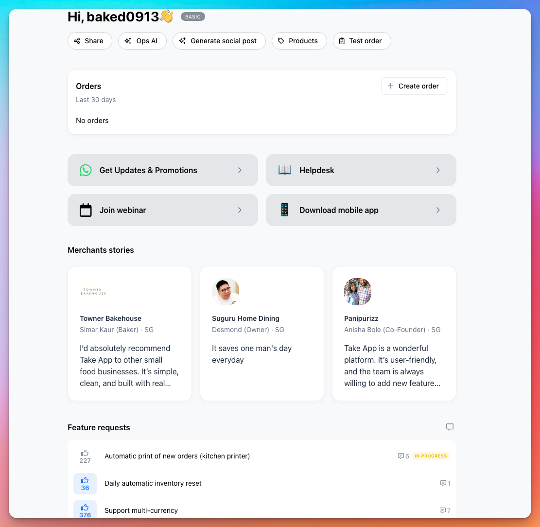 We’re featuring more merchant success stories in the admin dashboard, on the Take App website and on social media. These stories help increase awareness of your business to your community. Chat with us if you are interested in being featured.
